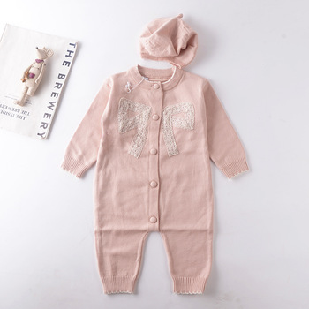 100% algodón orgánico otoño nuevo estilo Unisex bebé suéter mameluco cálido tejido ropa de una pieza con cierre de botón marca MIQV