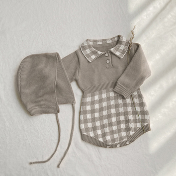 Otoño Unisex 100% algodón orgánico Casual Plaid cuello redondo suéter de punto mono bebé niño niña mameluco traje de escalada