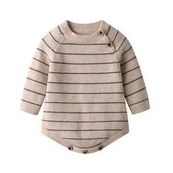 Mono de otoño para recién nacido, Pelele de bebé a rayas de algodón orgánico 100%, cierre de botón de punto de manga larga, suave y cálido